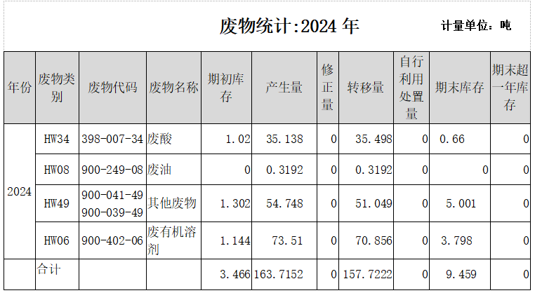 危險廢物接收單位: 福建綠洲固體廢物處置有限公司 福建志坤能源科技開發(fā)有限公司 危險廢物轉(zhuǎn)移運輸單位: 福州省昊辰物流有限公司 危險廢物轉(zhuǎn)移運輸單位: 福州省昊辰物流有限公司 危險廢物產(chǎn)生及轉(zhuǎn)移量: